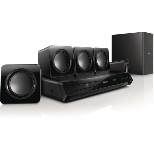 5 altoparlanti Cube con woofer da 2.5". Dischi riproducibili: CD, CDDA, CD-R/CD-RW, DVD, DVD +R/+RW, DVD -R/-RW, SVCD, VCD. Connettività: USB Hi-Speed, Ingresso audio, Ingresso AUX, Uscita Composite video (CVBS), Ingresso ottico digitale, Antenna FM fissa, Uscita HDMI 1.4 (ARC), Mini jack altoparlanti Easy-Fit. Consumo energetico: 50 W. Unità principale: 36x5.8x32.5 cm. Altoparlanti centrale, anteriore, posteriore: 8.5x8.8x8.3 cm. Subwoofer: 16x26.75x26.5 cm.